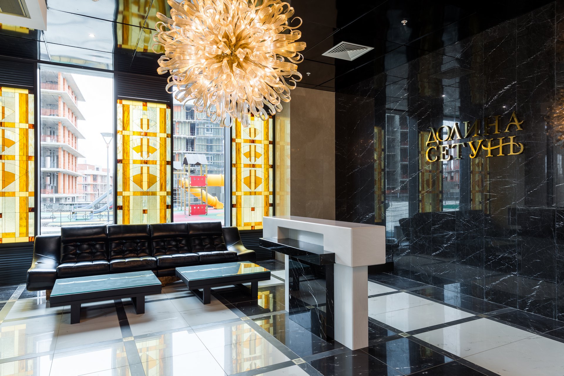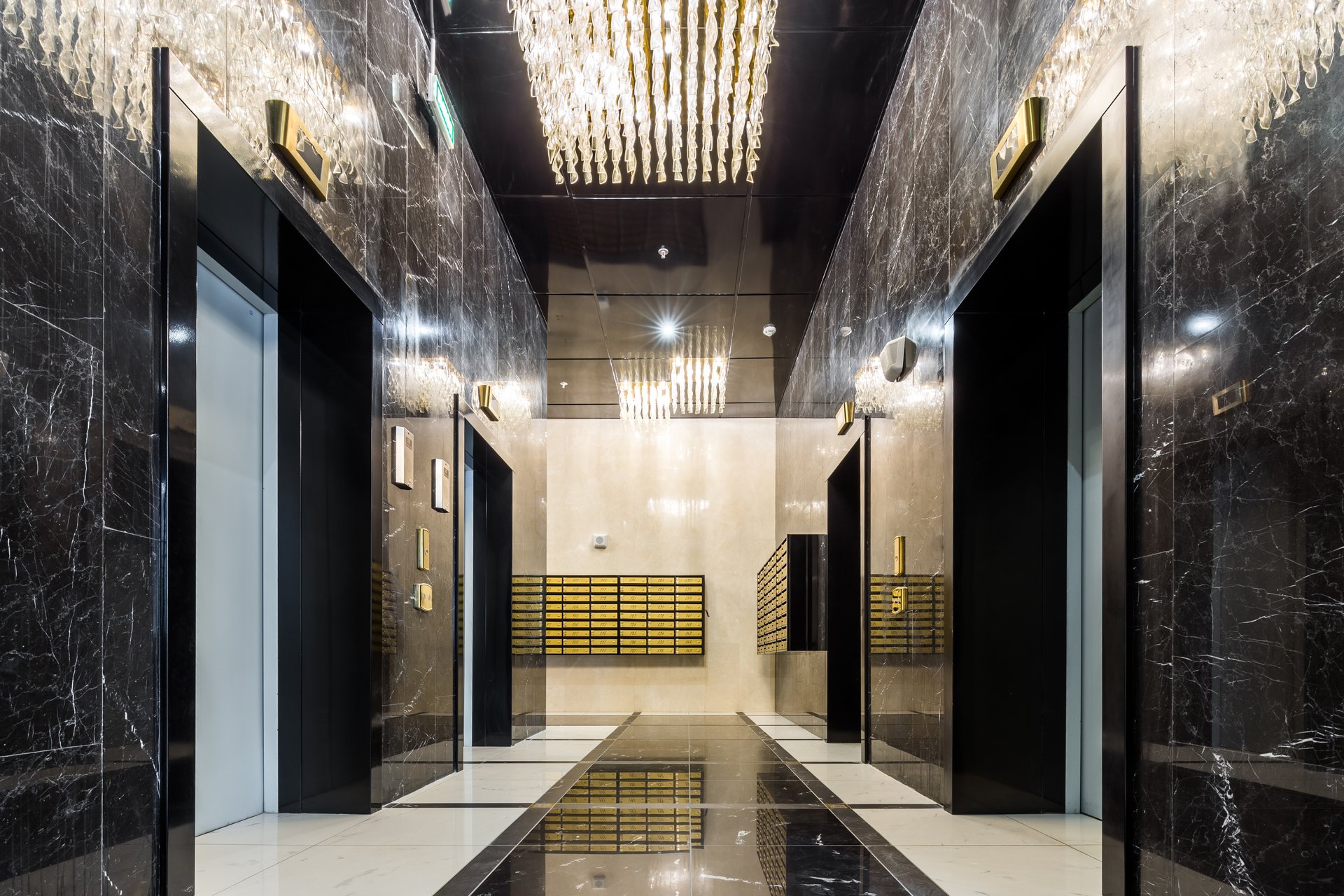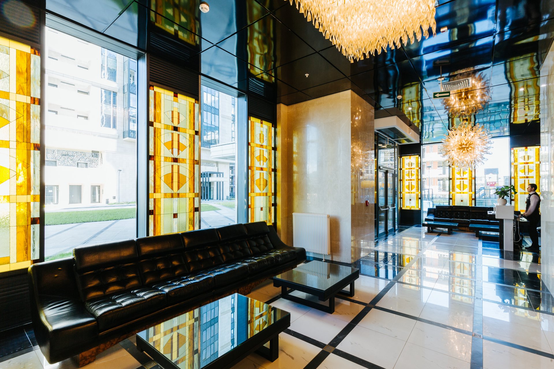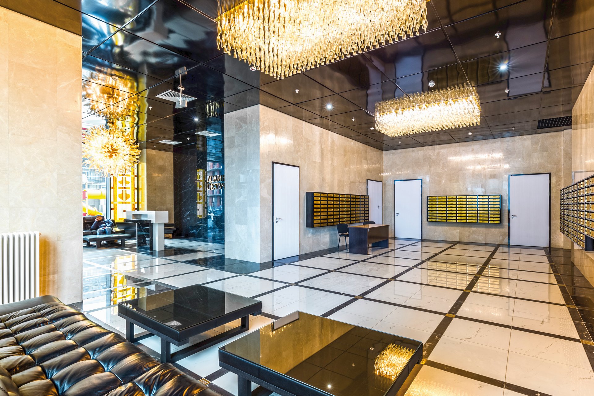 Лобби с золотыми люстрами