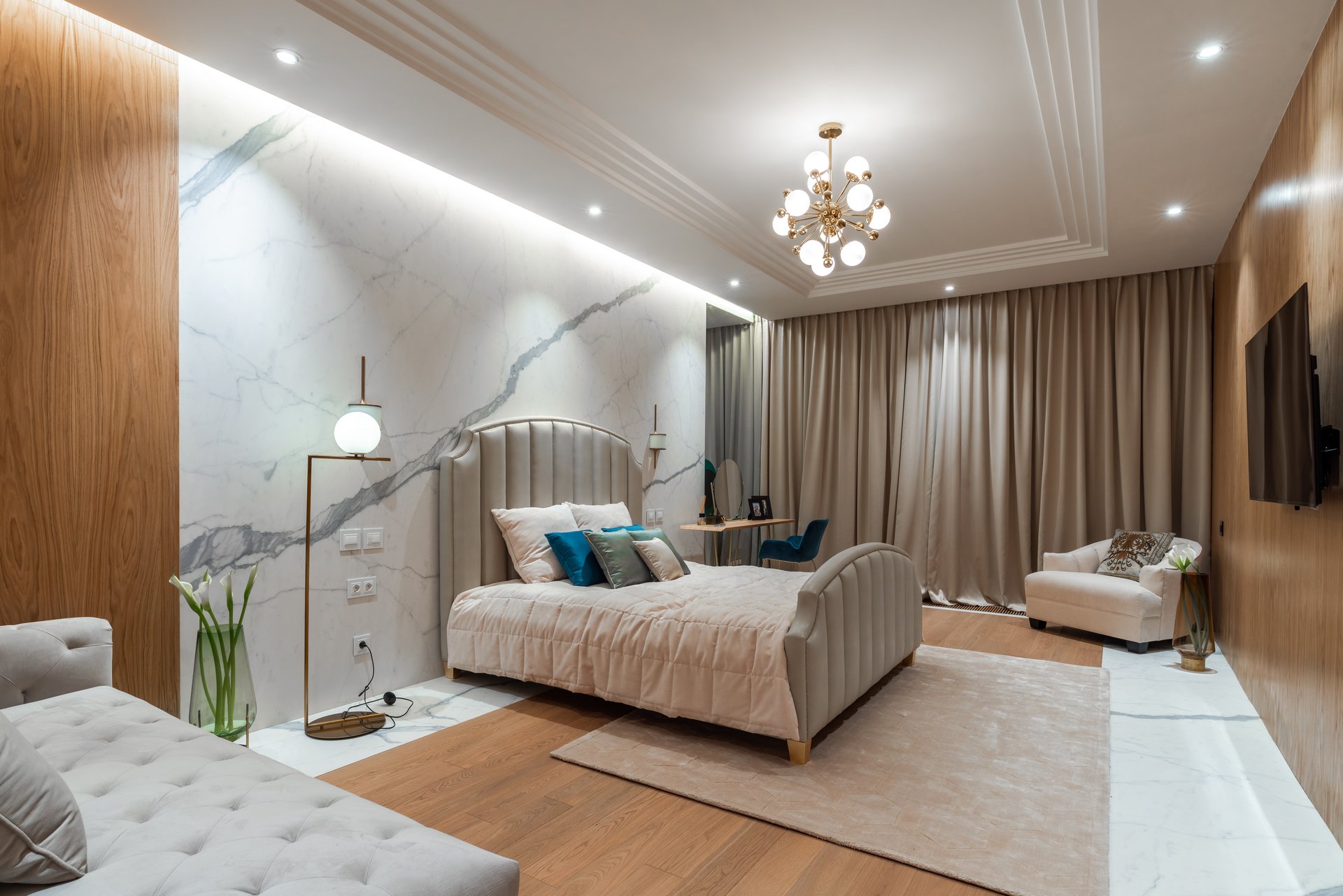 - Мраморные полы с контрастным орнаментом в стиле американского ар деко