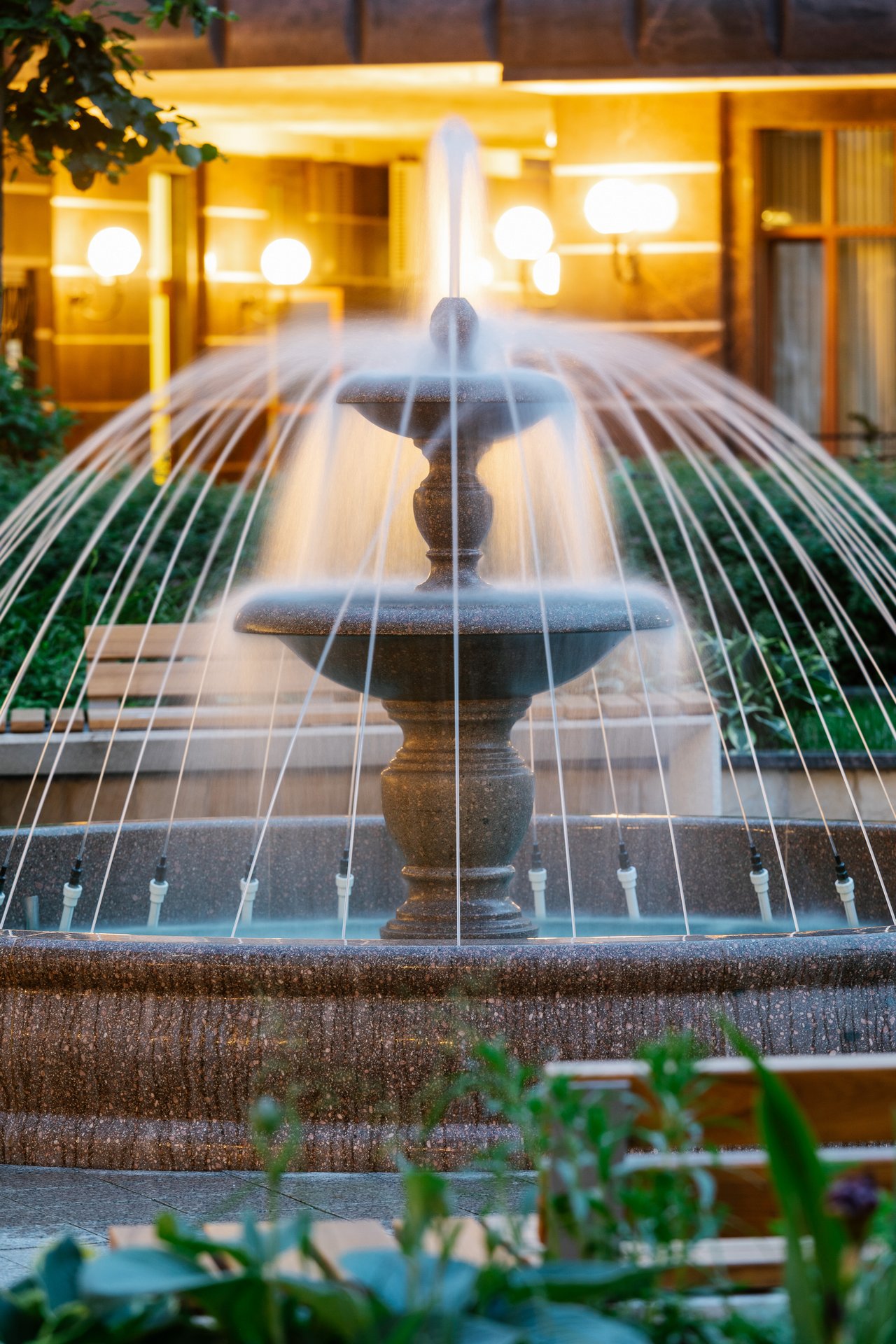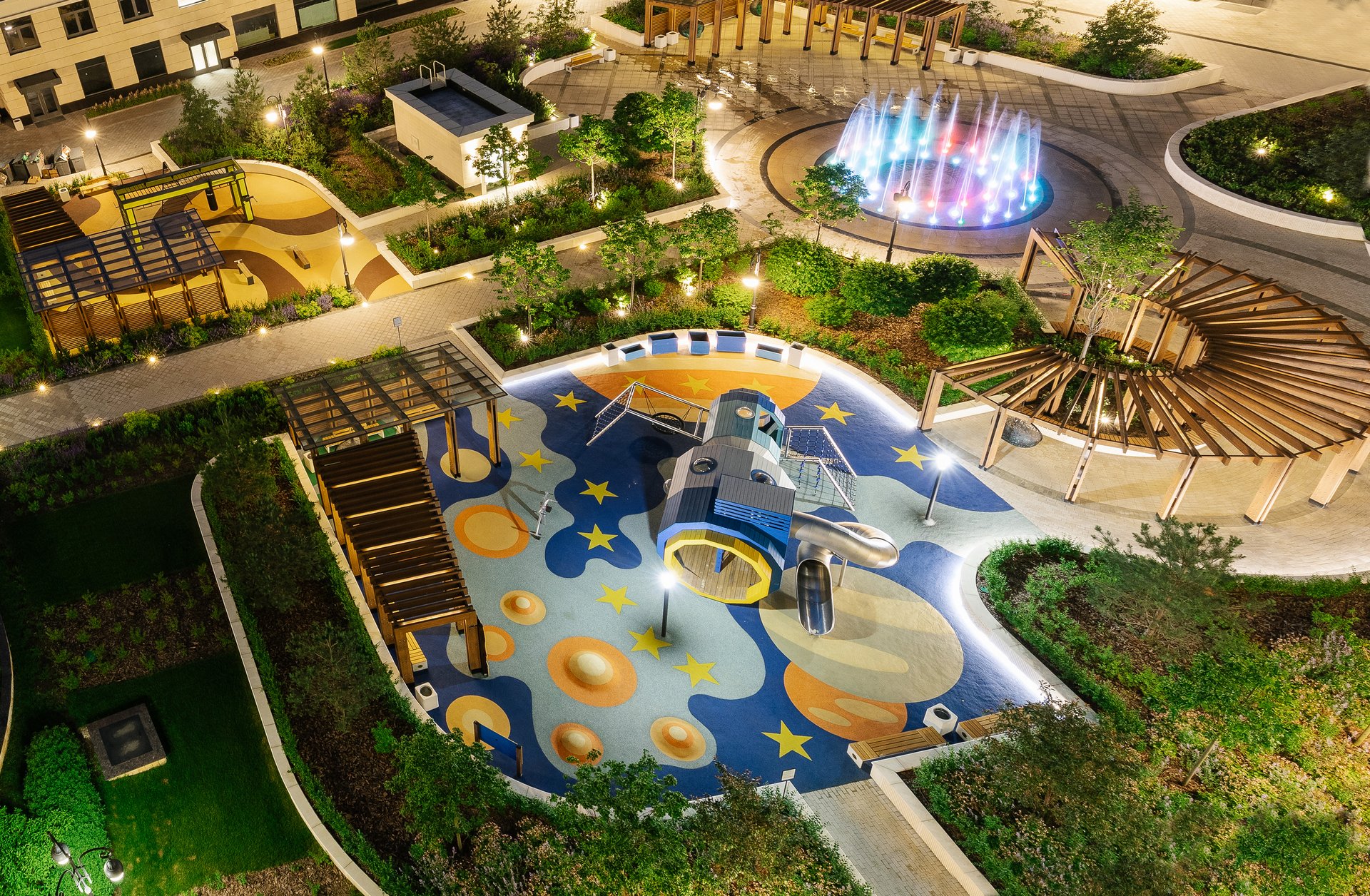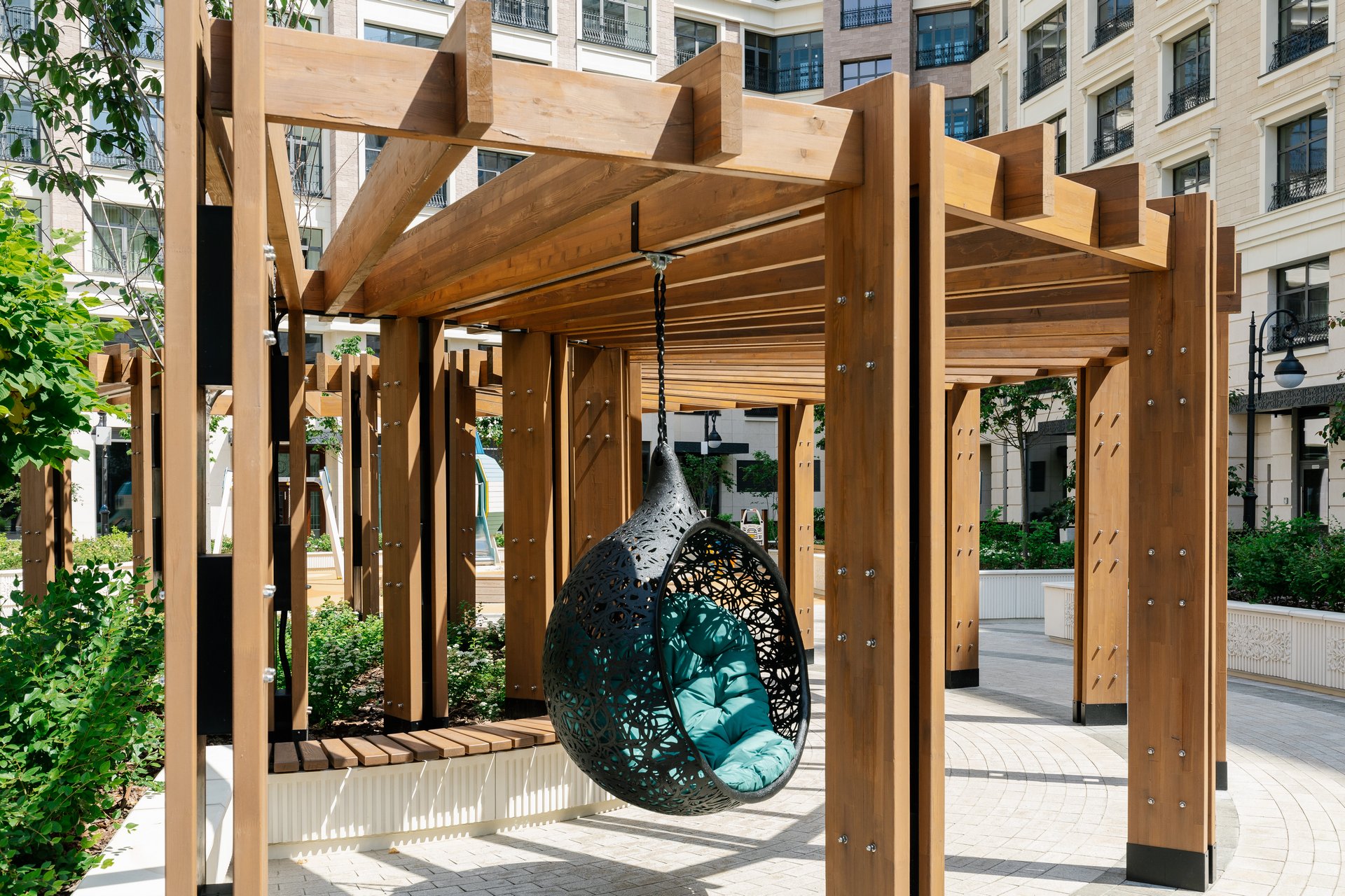 - Ландшафтный парк с богатым озеленением, беседками и перголами
