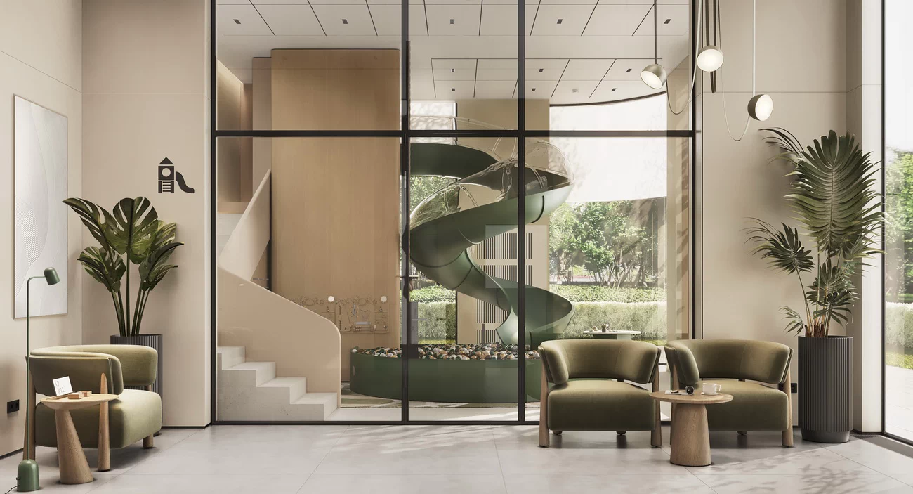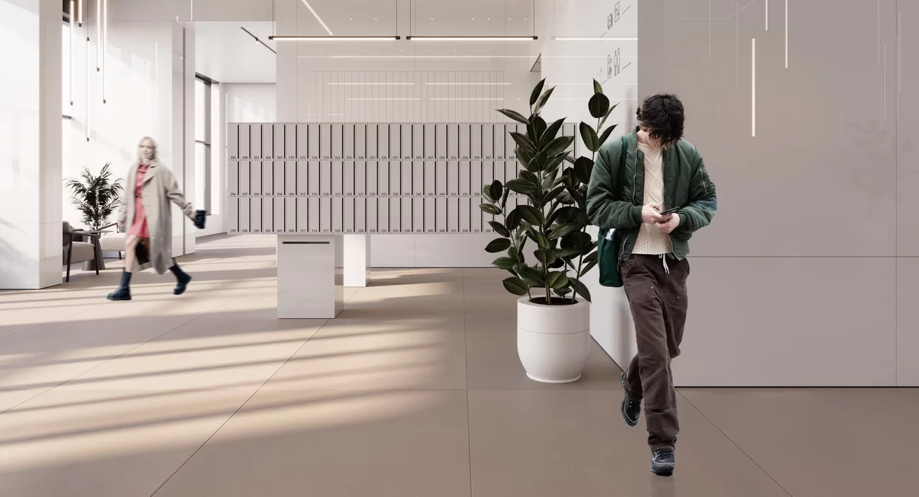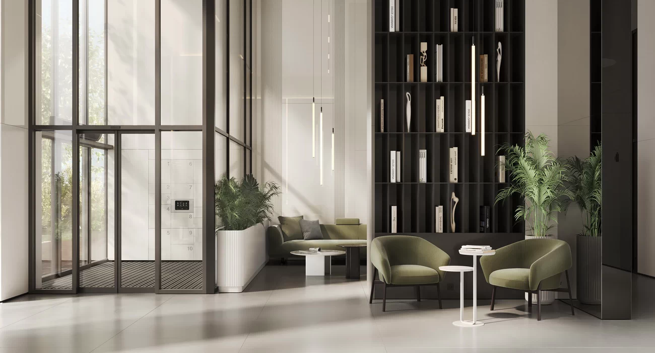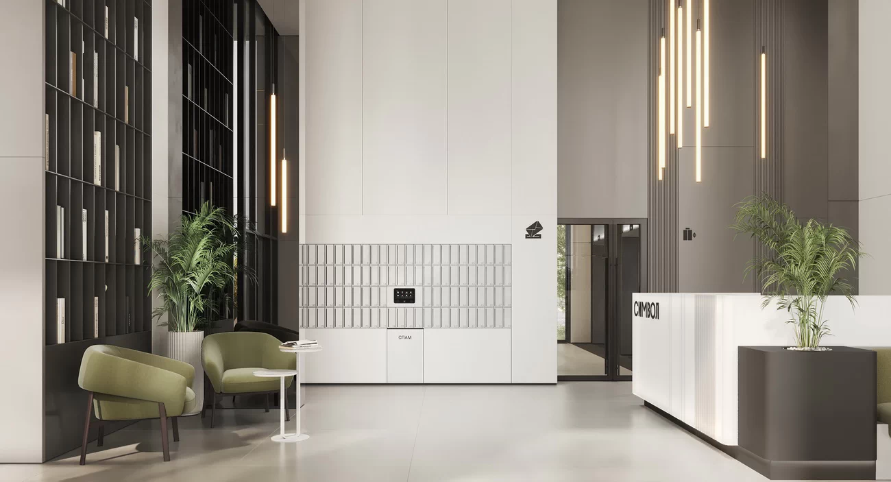 - Дизайнерские лобби: потолки до 9 м, авторская отделка, мебель и свет на заказ