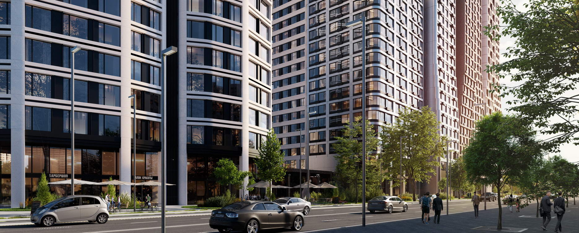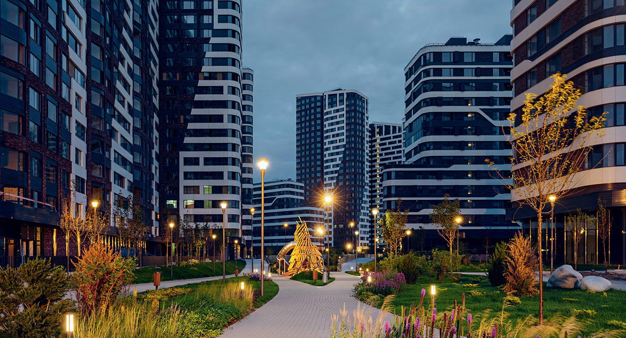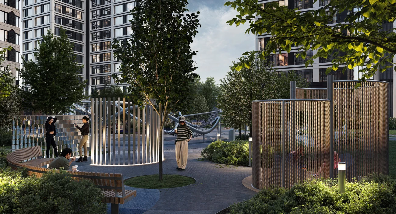 Квартал с парками во дворах и семейным променадом