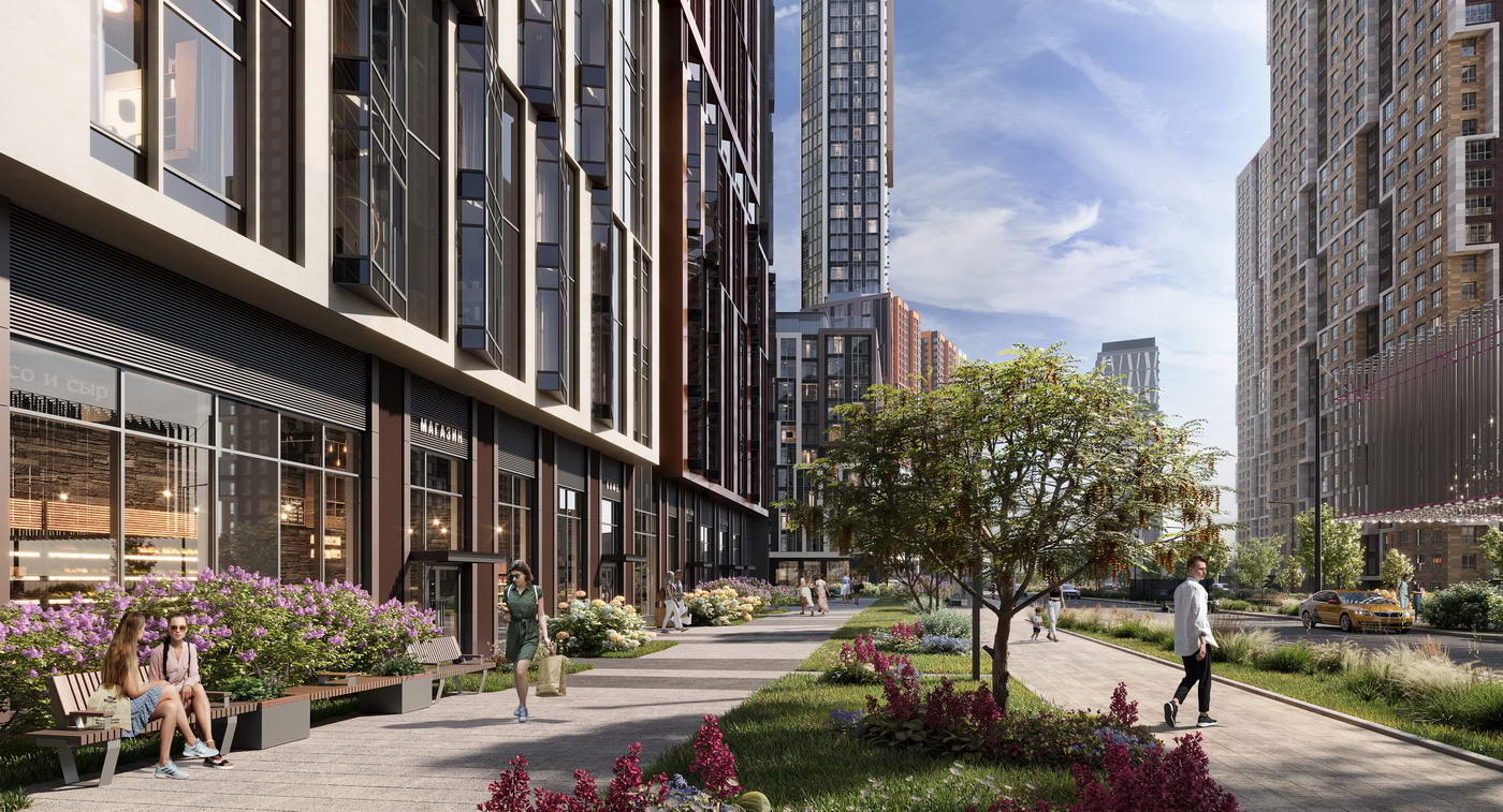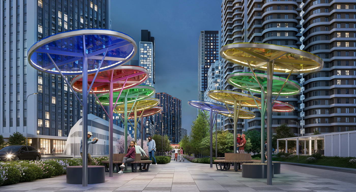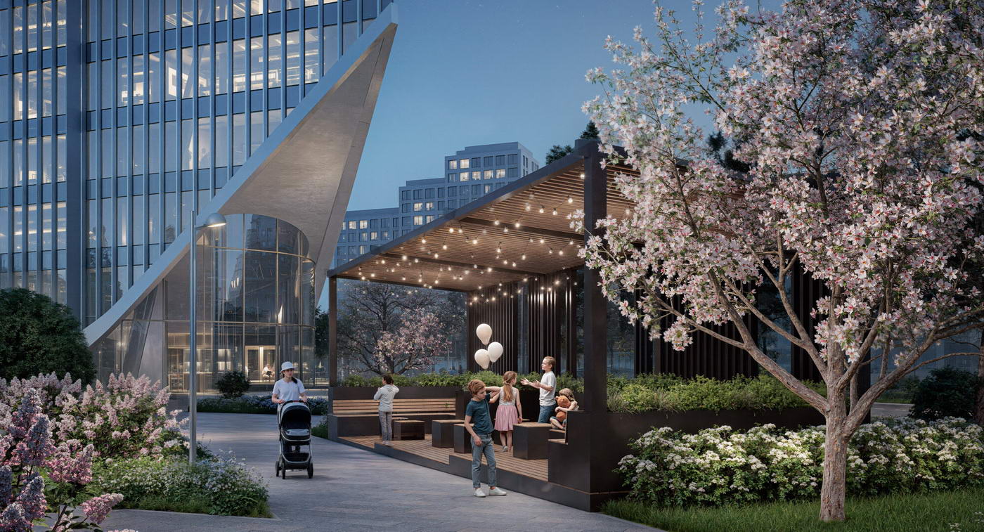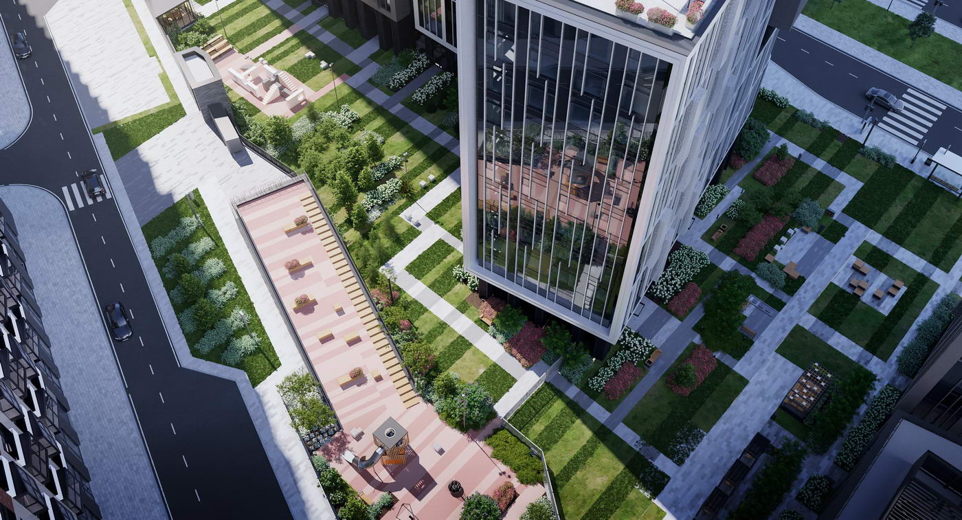 - Стильный архитектурный облик, разнообразие общественных пространств и концептуальное благоустройство