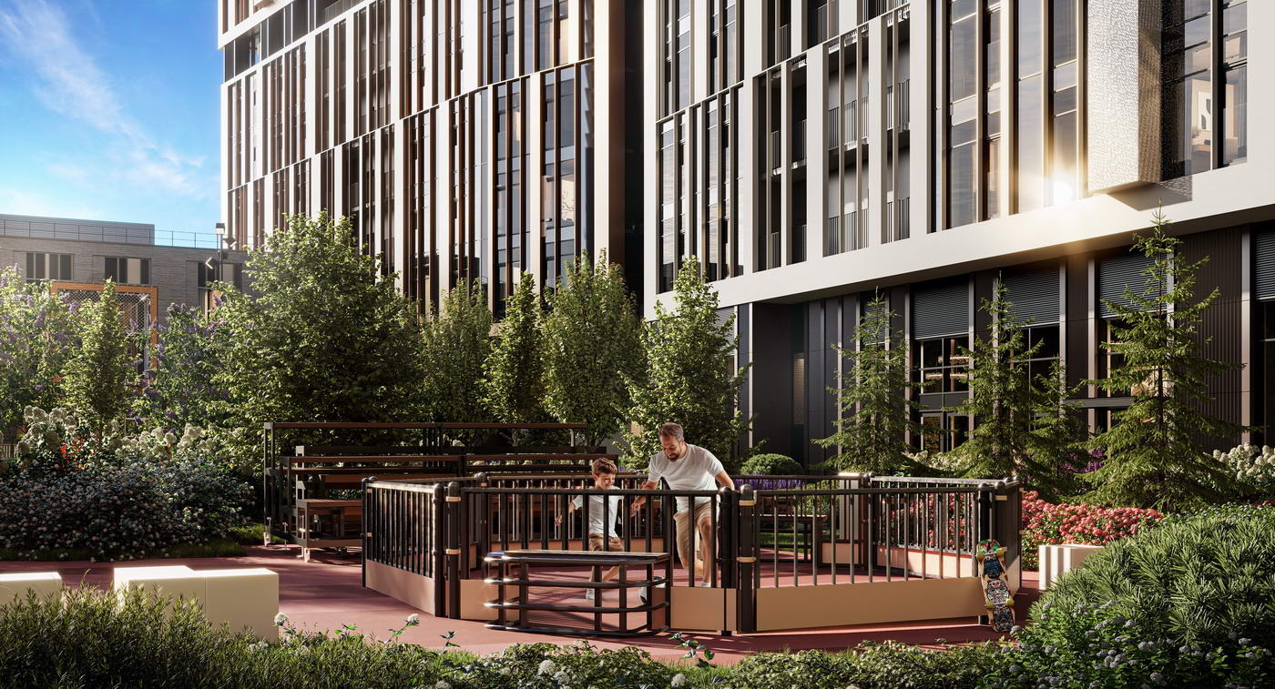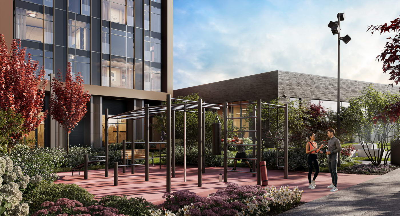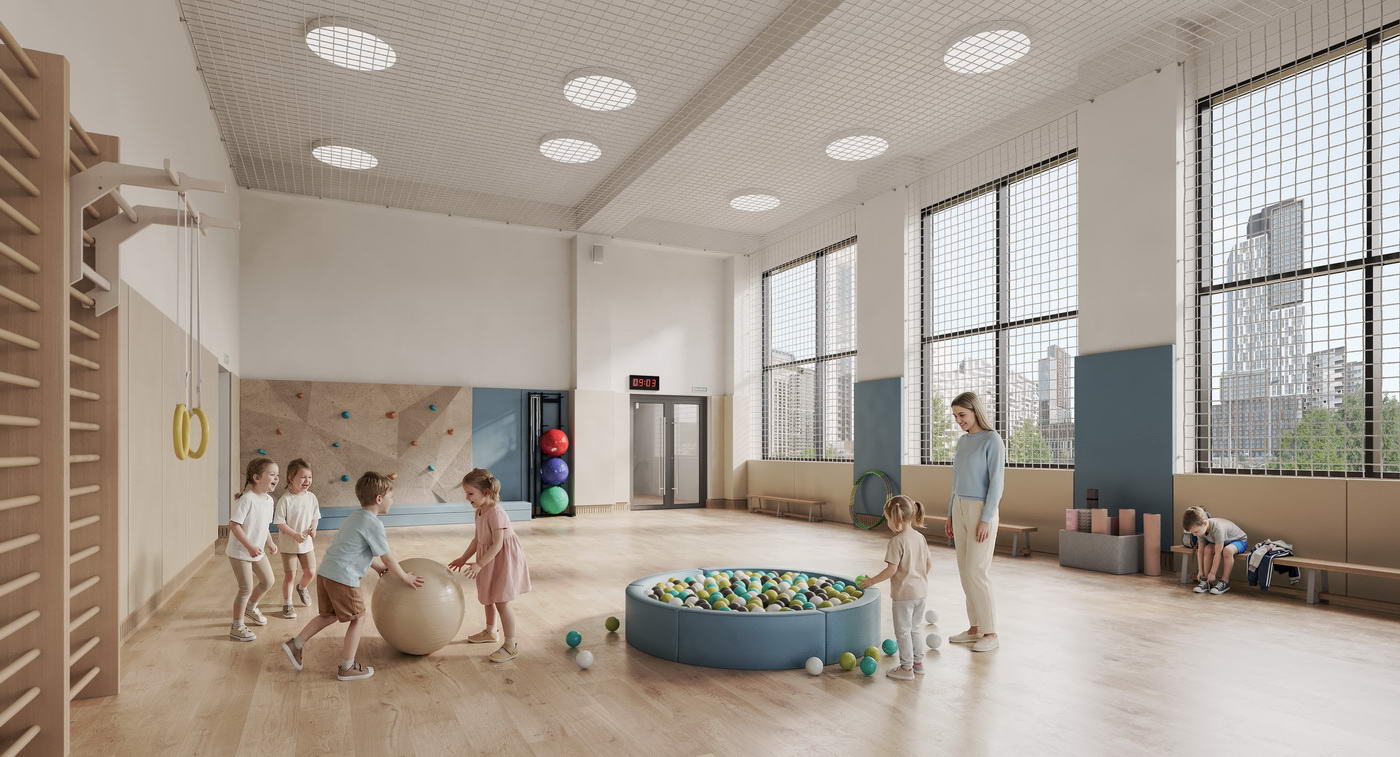 - Разнообразие общественных пространств для жителей любого возраста: детская игровая, репетиторские, лаунжи, коворкинг, спортрум