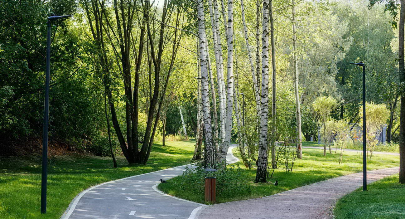 - В природном парке: места для тихого отдыха, прогулочный и вело- и эко-маршруты, детские и спортивные площадки, летняя школа с огородом, лекторий