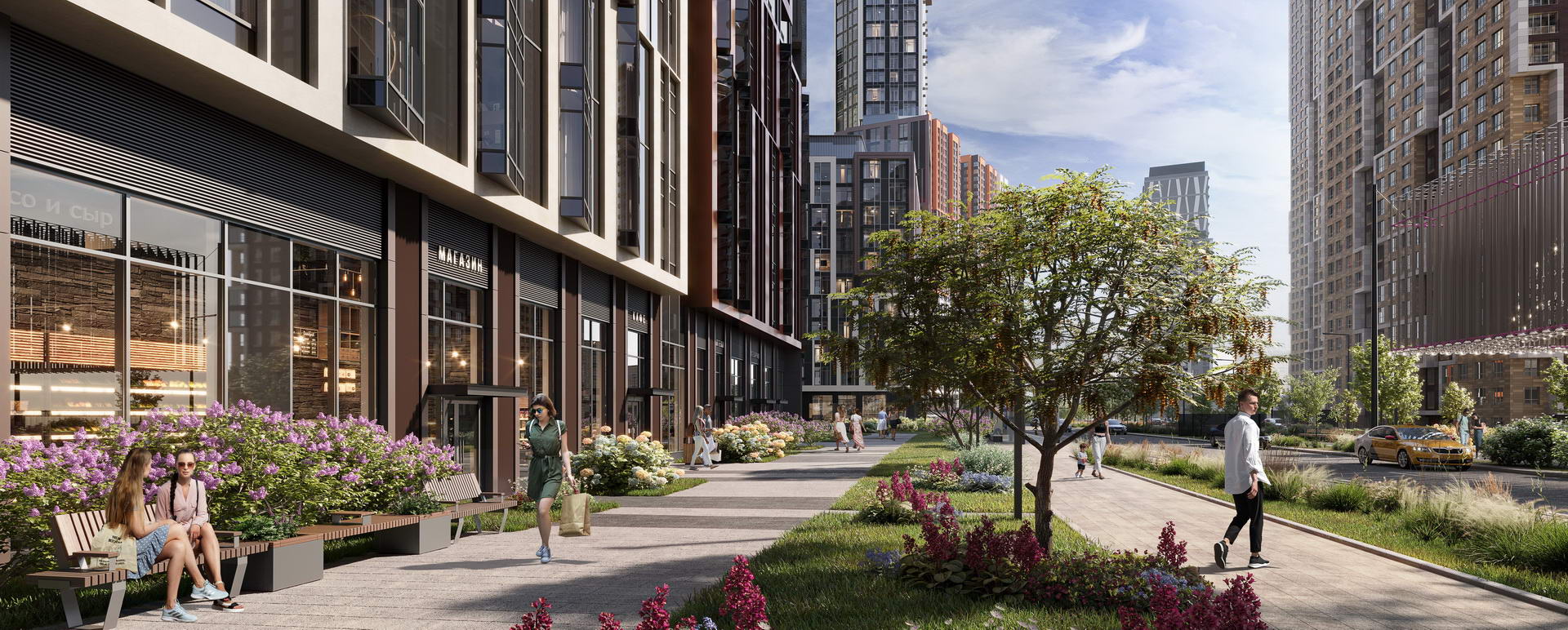 - Кафе, супермаркеты, пекарни, кофейни, рестораны, магазины, аптеки, фитнес, медицинские центры, творческие студии — в квартале уже открыты десятки объектов инфраструктуры.