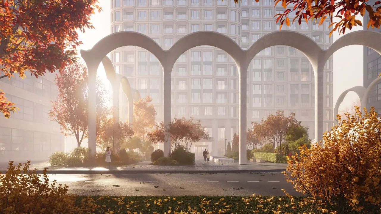 При благоустройстве проекта были разработаны просторные дворы-сады с воркаут-зоной, детской площадкой, беседками и перголами с качелями, а также с уютным пешеходным сквериком и площадкой для игры в петанк.